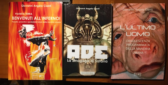 Sono tre libri impegnativi, soprattutto i due , “Pianeta terra benvenuti all’inferno” e “Ade la sinagoga di Satana” , mentre “L’ultimo uomo, obsolescenza programmata della mandria umana” è più un racconto, ma conclude meravigliosamente gli altri due, almeno per me, che li ho letti nell’ordine in cui li ho elencati qui sopra.